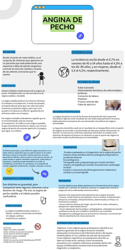 INTERVENCIONES DE ENFERMERIA Objetivos: Como objetivo general planteamos identificar los aspectos generales de la angina de pecho inestable destacando la importancia de Enfermería dentro del equipo multidisciplinar en los cuidados de este tipo de pacientes. Como objetivos específicos nos planteamos describir su labor en la educación sanitaria como herramienta preventiva y los cuidados enfermeros prestados dentro del equipo multidisciplinar durante todo el procedimiento diagnóstico y terapéutico.