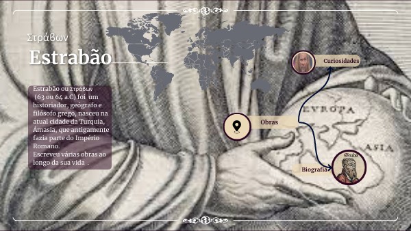 Estrabão ou Στράϐων (63 ou 64 a.C) foi um historiador, geógrafo e filósofo grego, nasceu na atual cidade da Turquia, Ámasia, que antigamente fazia parte do Império Romano.Escreveu várias obras ao longo da sua vida .