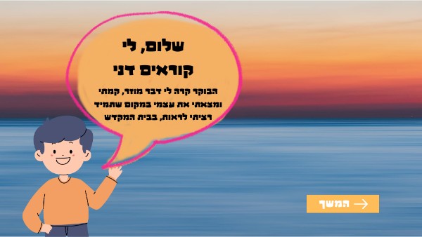 הבוקר קרה לי דבר מוזר, קמתי ומצאתי את עצמי במקום שתמיד רציתי לראות, בבית המקדש