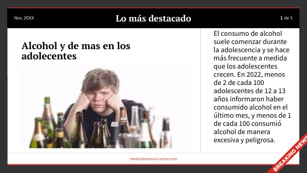El consumo de alcohol suele comenzar durante la adolescencia y se hace más frecuente a medida que los adolescentes crecen. En 2022, menos de 2 de cada 100 adolescentes de 12 a 13 años informaron haber consumido alcohol en el último mes, y menos de 1 de cada 100 consumió alcohol de manera excesiva y peligrosa.