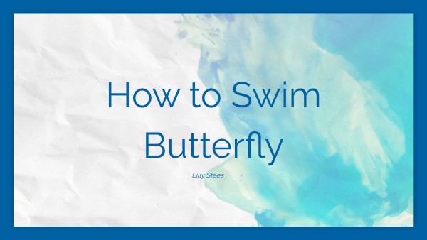 Next comes the most important part of your race: The stroke. Your stroke is broken up into two main parts: Your arms and your legs. We will start with your legs. For your legs, you will want to be dolphin-kicking hard and fast. You need to emphasize pressing your chest down and sticking your butt out. Your kick is mainly through your chest, so you need to power it through it. Bend your knees slightly, and let the kick ripple through them. Finally, put this all together with exact timing. As you are halfway through your first kick, start your arms and make sure to end your kick and arms at the same time.