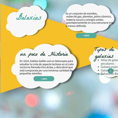 es un conjunto de estrellas, nubes de gas, planetas, polvo cósmico, materia oscura y energía unidas gravitatoriamente en una estructura más o menos definida.
