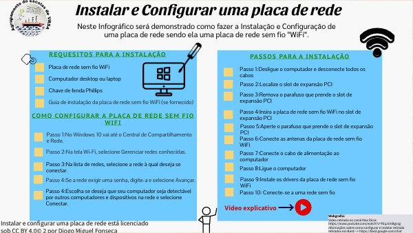 Neste Infográfico será demonstrado como fazer a Instalação e Configuração de uma placa de rede sendo ela uma placa de rede sem fio "WiFi".