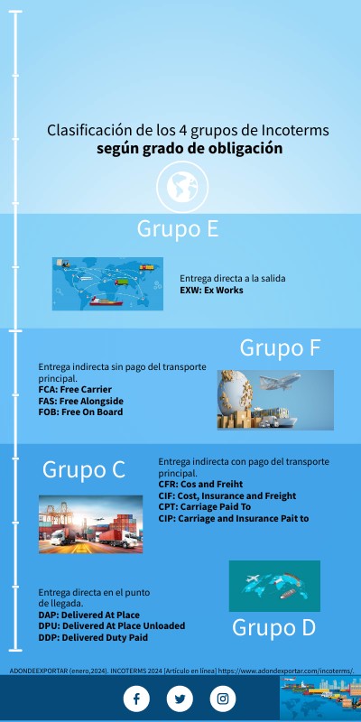 Clasificación de los 4 grupos de Incoterms según grado de obligación