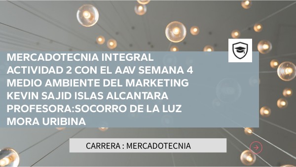 Mercadotecnia integral Actividad 2 con el aav semana 4 medio ambiente del marketing kevin sajid islas alcantara PROFESORA:SOCORRO DE LA LUZ MORA URIBINA