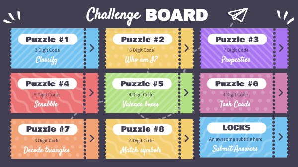 You’ve been kidnapped and taken to the lair of the evil scientist, Dr. Wackadoodle. He will only let you leave if you can answer a series of puzzles about the Periodic Table. Your freedom depends on it. The countdown begins now. Good luck to you.