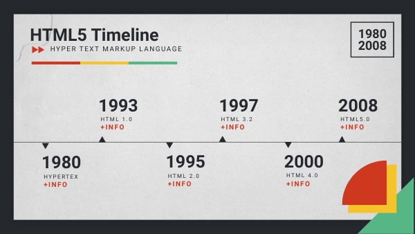 Este proyecto educativo muestra la línea de tiempo de HTML y su transformación a través del tiempo. Los textos son tomados de: https://codoid.com/software-testing/html-vs-html5-listing-the-key-differences-and-advantages/