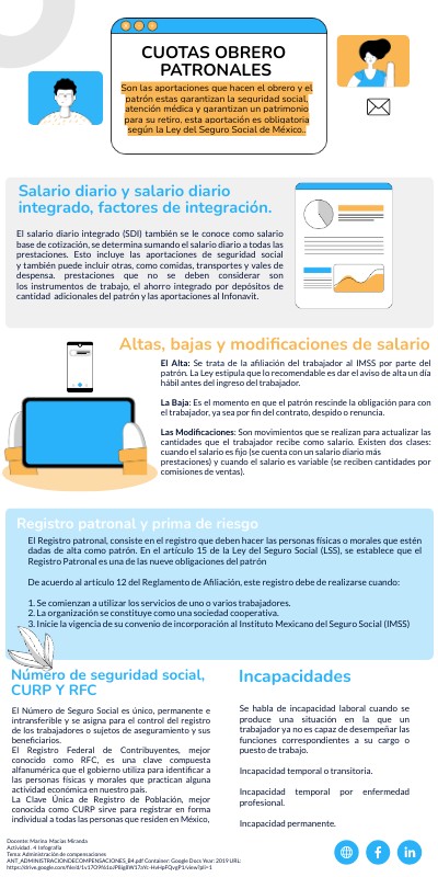 Son las aportaciones que hacen el obrero y el patrón estas garantizan la seguridad social, atención médica y garantizan un patrimonio para su retiro, esta aportación es obligatoria según la Ley del Seguro Social de México..