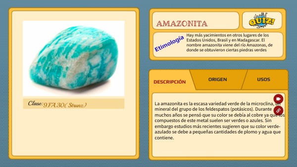 La amazonita es la escasa variedad verde de la microclina, un mineral del grupo de los feldespatos (potásicos). Durante muchos años se pensó que su color se debía al cobre ya que los compuestos de este metal suelen ser verdes o azules. Sin embargo estudios más recientes sugieren que su color verde-azulado se debe a pequeñas cantidades de plomo y agua que contiene.