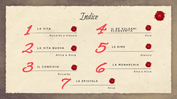 Dante Alighieri, nato nel 1265 a Firenze in Italia, è uno dei più grandi poeti della storia letteraria. Cresciuto in una famiglia di piccola nobiltà, Dante ricevette un'educazione e istruzione eccellente, sviluppando un profondo interesse per la poesia, la filosofia e la teologia attraverso lo studio degli autori classici come Virgilio. Coinvolto negli eventi politici della Firenze medievale e partecipe delle controversie tra le fazioni guelfe e ghibelline, Dante si distinse per il suo coinvolgimento nella vita politica cittadina: in particolare, fu sostenitore della fazione dei guelfi bianchi. Si sposò con Gemma Donati, donna da cui avra 4 figli. L'elemento principale della sua ispirazione poetica fu il suo amore platonico per Beatrice Portinari, donna che incarnava l'ideale di bellezza e perfezione spirituale. L'amore per Beatrice ispirò gran parte della sua poesia.