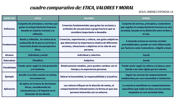 cuadro comparativo de: ETICA, VALORES Y MORAL