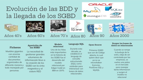 Uno de los hitos más importantes en la historia de los SGBD fue el desarrollo del modelo relacional por Edgar Codd en IBM en 1970.