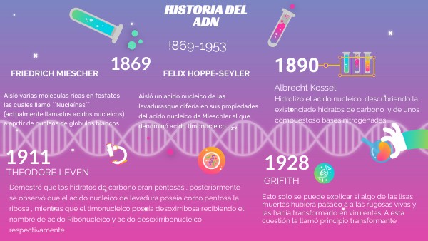 Levene aisló parte de acido nucleicos, unas moléculas mas sencillas que estaban formadas por una pentosa, una base nitrogenada y una molécula de acido fosfórico . A este conjunto lo llamó nucleótidos.