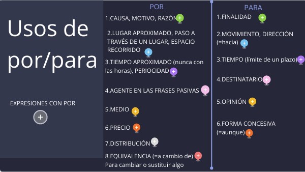 1.Quiero que me pagues por adelantado. 2.Por cierto, ¿vas a ir a la fiesta? 3.La maestra está enferma, por consiguiente no tuvimos clase. 4.Por desgracia, no sobrevivió a la operación. 5.Limpié mi casa por encima. 6.¡Por fin me han aceptado en el máster! 7.¿Vas a hacerlo por las buenas o por las malas? 8.Por lo general, la esperanza de vida ha aumentado. 9.Por lo menos podrías limpiar tu cuarto. 10.Voy a llevarme esto por si acaso. 11.Por suerte no fue nada grave. 12.Por supuesto que voy a ir a clase. 13.Fuimos al cine, luego al cine y, por último, al parque.