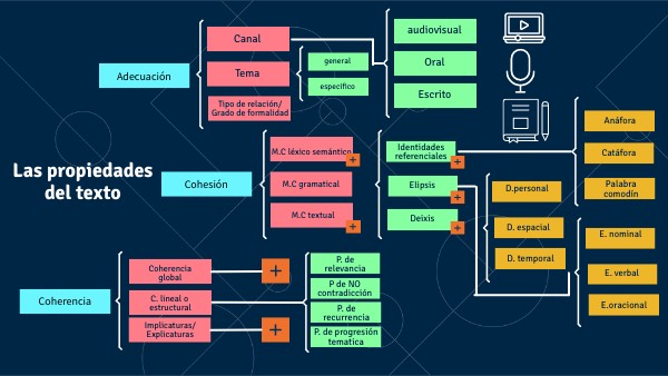 Marcadores del discurso, que establecen vínculos explícitos entre distintos enunciados o partes más extensas de un texto.