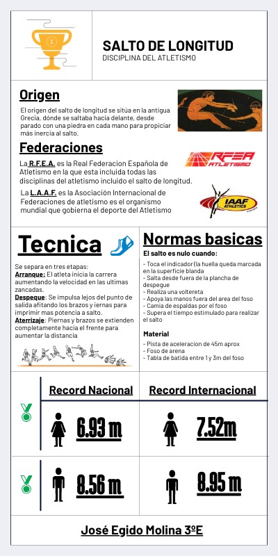 La R.F.E.A. es la Real Federacion Española de Atletismo en la que esta incluida todas las disciplinas del atletismo incluido el salto de longitud.