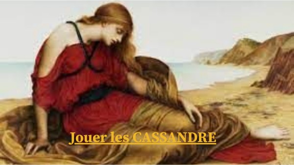 L’expression “Jouer les Cassandre“ vient du mythe grecque suivant : Cassandre est une princesse troyenne elle a reçu d’Apollon ( dieu de la beauté) le don de prédire l’avenir. En échange il lui demande de devenir sa maîtresse, ce que Cassandre accepte. Apollon lui offre le don mais Cassandre ne tient pas sa parole et se sauve au moment de passer à l’acte. Apollon ne peut pas retirer le don qu’il a donné Cassandre, mais, comme souvent dans la mythologie, il lui inflige une punition liée au « crime » qu’elle a commis. Comme Cassandre n’a pas tenu parole et qu’elle a menti, Apollon fait en sorte que personne ne la croit jamais. Elle pourra ainsi voir et prédire l'avenir mais personne ne la croiera. C'est comme ça que lorsqu’elle annonce à sa famille que le cheval de Troie sera rempli de soldats grecques qui tueront tous les troyens, personne ne la croit.