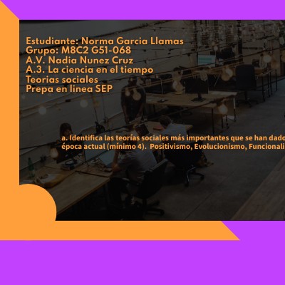 Estudiante: Norma Garcia Llamas Grupo: M8C2 G51-068 A.V. Nadia Nunez Cruz A.3. La ciencia en el tiempo Teorias sociales Prepa en linea SEP