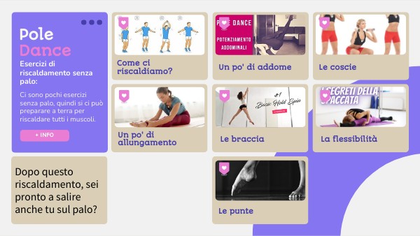 Ci sono pochi esercizi senza palo, quindi si ci può preparare a terra per riscaldare tutti i muscoli.