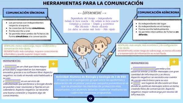 Actividad: Alumnos de Biología y Geología de 3 de ESOProyecto de investigación grupal sobre las epidemias y elaboración de un póster para una campaña preventiva en el que se presenten las medidas de protección más importantes. Los alumnos deberán colaborar mediante las cuatro herramientas propuestas.