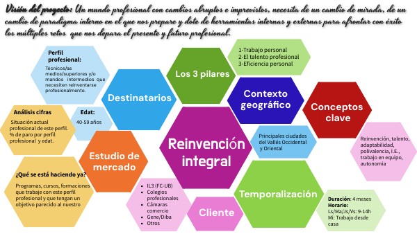 Visión del proyecto: Un mundo profesional con cambios abruptos e imprevistos, necesita de un cambio de mirada, de un cambio de paradigma interno en el que nos prepare y dote de herramientas internas y externas para afrontar con éxito los múltiples retos que nos depara el presente y futuro profesional.