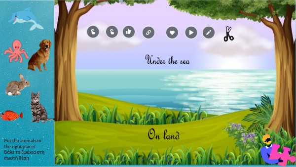 Put the animals in the right place/ Βάλε τα ζωάκια στη σωστή θέση