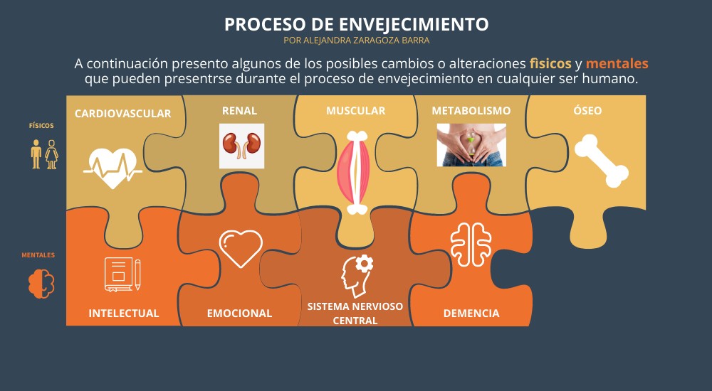 A continuación presento algunos de los posibles cambios o alteraciones fìsicos y mentales que pueden presentrse durante el proceso de envejecimiento en cualquier ser humano.