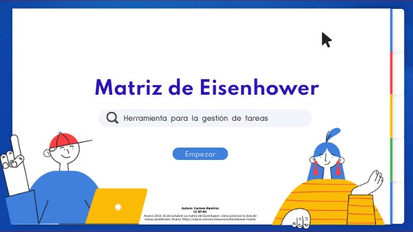 Autora: Carmen Ramírez CC BY-NC Asana (2023, 02 de octubre) La matriz de Eisenhower: cómo priorizar tu lista de tareas pendientes. Asana. https://asana.com/es/resources/eisenhower-matrix