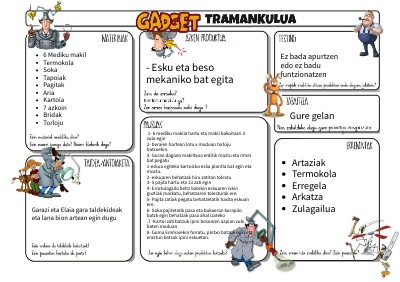 1- 6 mediku makila hartu eta makil bakoitzari 3 zulo egin 2- beraien hartean lotu x moduan torloju batzuekin. 3- Goran dagoen makiltxoa erditik moztu eta rimel bat pegatu 1-eskua egiteko kartoizko esku plantla bat egin eta moztu. 2- eskuaren behatzak hiru zatitan tolestu. 3- 5 pajita hartu eta 13 zati egin 4- Errotulagailu beltz batekin eskuaren ixkin guztiak markatu, behatzaren tolesturak ere. 5- Pajita zatiak pegatu behatzetatik hasita eskuan ere. 6- Soka pajitetatik pasa eta bukaeran korapilo batzk egin behatzak pasa ahal izateko .7 -Kartoi zati batzuk ipini besoaren azpian zubi baten moduan. 8- Goma Emmarekin forratu, pintxo batzuk egin eta eraztun batzuk ipini eskuetan.