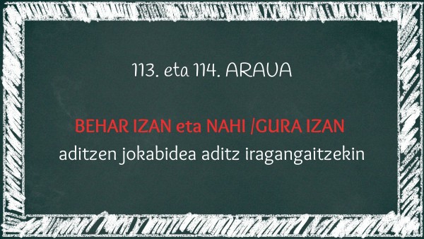 - Du-aditza + nahi/gura/behar --------[aditza]+ nai/gura+ du-saileko aditz laguntzailea.