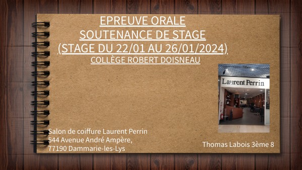 Mon stage chez le salon de coiffure Laurent Perrin m'a fait découvrir le monde du travail trés différent de l'école j'ai pu apprendre le travail en équipe et effectuer les différentes tâches que l'on m'a données.