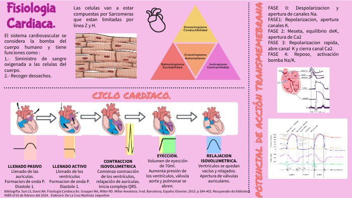 Bibliogrfía: Sun LS, Davis NA. Fisiologia Cardiaca En. Gropper MA, Miller RD. Miller Anestesia. 9 ed. Barcelona, España: Elsevier; 2015. p 384-402. Recuperado de biblioteca INER el 03 de febrero del 2024. Elabroró: De La Cruz Martinez Jaqueline