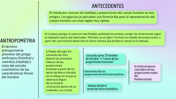 El interés por conocer las medidas y proporciones del cuerpo humano es muy antiguo. Los egipcios ya aplicaban una fórmula fija para la representación del cuerpo humano con unas reglas muy rígidas.