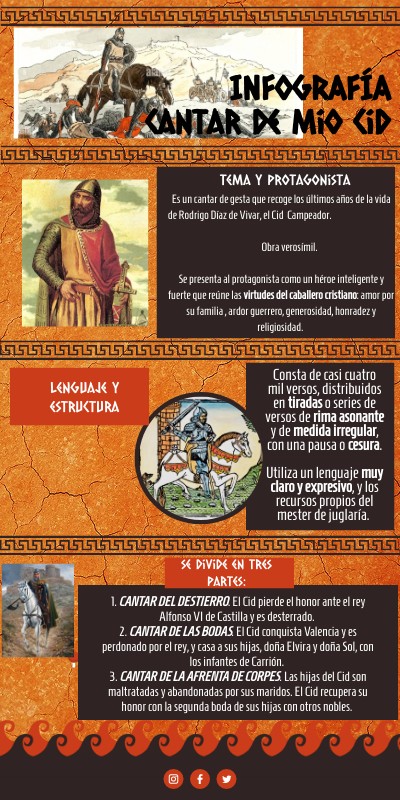 Es un cantar de gesta que recoge los últimos años de la vida de Rodrigo Díaz de Vivar, el Cid Campeador. Obra verosímil. Se presenta al protagonista como un héroe inteligente y fuerte que reúne las virtudes del caballero cristiano: amor por su familia , ardor guerrero, generosidad, honradez y religiosidad.