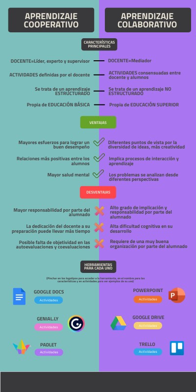 (Pinchar en los logotipos para acceder a la herramienta, en el nombre para las características y en actividades para ver ejemplos de su uso)