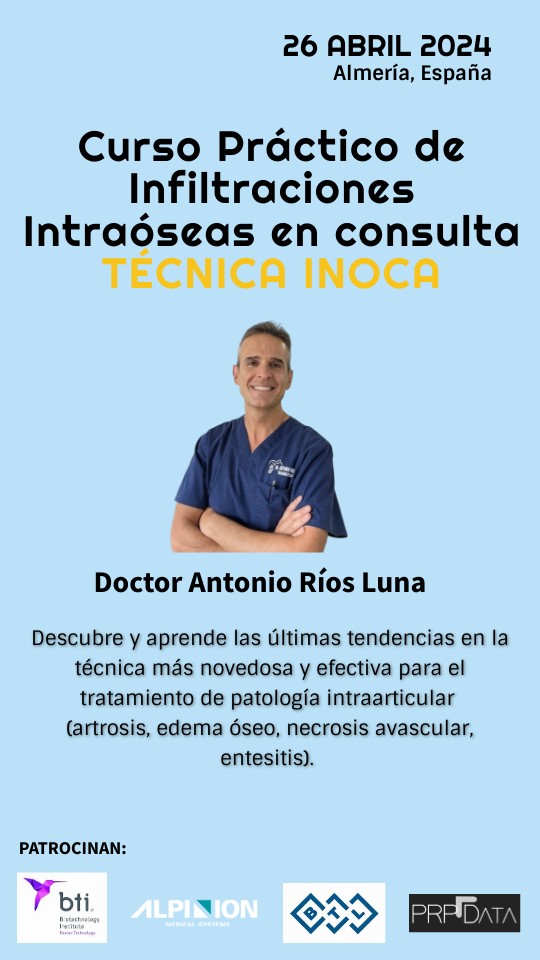 Dr. Antonio Ríos Luna: Especialista en Traumatología y Cirugía Ortopédica. Creador de la técnica INOCA y con más de 20 años de experiencia en la aplicación de Terapias Regenerativas.