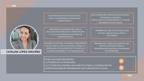 Doctora en Estudios Regionales. Por la Universidad Autónoma de Chiapas.UNACH