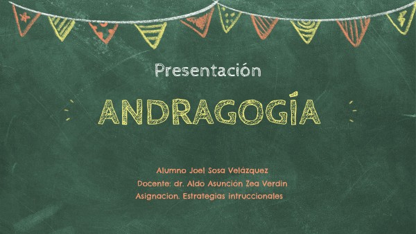 Referencias Castillo Silva, F. (2018). Andragogía, andragogos y sus aportaciones. Voces De La Educación, 3(6), 64-76. Sierra Fontalvo, R. (2006). La Andragogía, modelo propicio para el desarrollo de la educación de adultos. PROSPECTIVA, 4(1), 100-102 http://www.redalyc.org/articulo.oa?id=496251107016