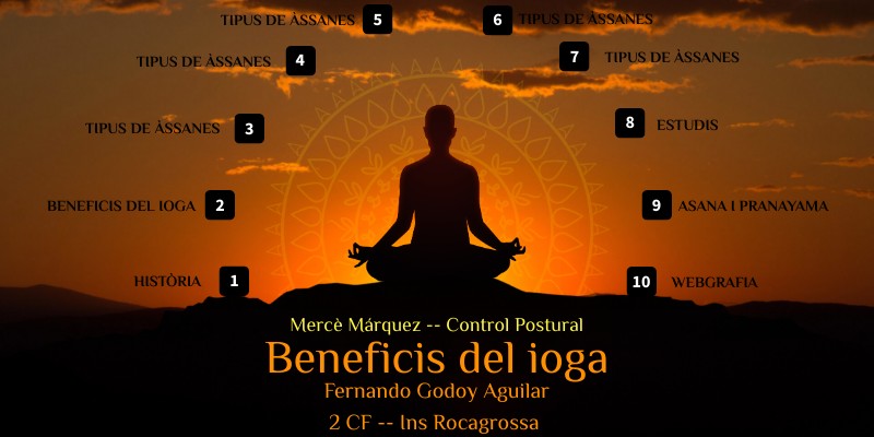 Millora de la flexibilitat: Les postures de ioga (asanes) treballen en l'estirament i l'enfortiment dels músculs.Millora de la postura: El ioga fomenta la consciència corporal i l'alineació adequada. Reducció de l'estrès: La pràctica de la respiració conscient (pranayama) i la meditació al ioga ajuden a reduir els nivells d'estrès i ansietat. Promoción de la circulación: les pràctiques de respiració poden millorar la circulació sanguínia. Desenvolupament de lequilibri.