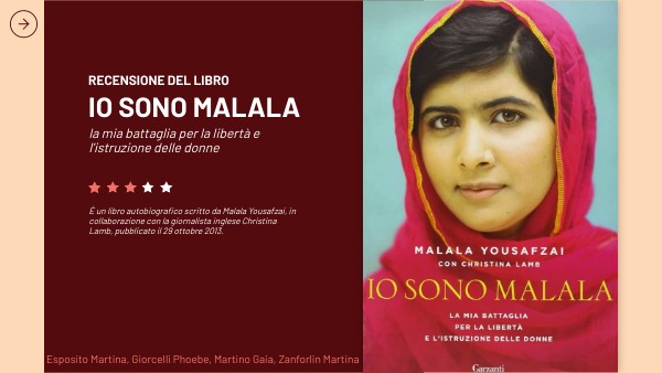 Questo libro è l’autobiografia di Malala Yousafzai, vincitrice del Premio Nobel per la Pace nel 2014.