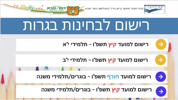 רישום למועד קיץ תשפ"ו - תלמידי י"א