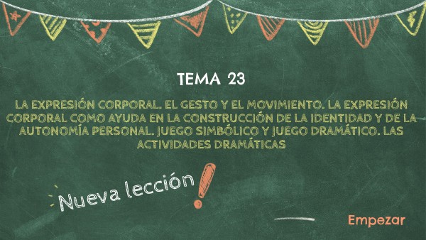 -INTRODUCCIÓN -JUSTIFICACIÓN 1-LA EXPRESIÓN CORPORAL 2-EL GESTO Y EL MOVIMIENTO 2.1-EL MOVIMIENTO 2.2-EL GESTO3-LA EXPRESIÓN CORPORAL COMO AYUDA EN LA CONSTRUCCIÓN DE LA IDENTIDAD Y DE LA AUTONOMÍA PERSONAL 4-JUEGO SIMBÓLICO Y JUEGO DRAMÁTICO 4.1-JUEGO SIMBÓLICO 4.2-JUEGO DRAMÁTICO5-LAS ACTIVIDADES DRAMÁTICAS 6-VINCULACIÓN DEL TEMA CON OTROS TEMAS DEL TEMARIO DE EDUCACIÓN INFANTIL PARA EL CONCURSO OPOSICIÓN 2024. 7-VINCULACIÓN DEL TEMA CON LA NORMATIVA ESTATAL Y AUTONÓMICA 8-CONCLUSIÓN 9-REFERENCIAS BIBLIOGRÁFICAS Y WEBGRAFÍA