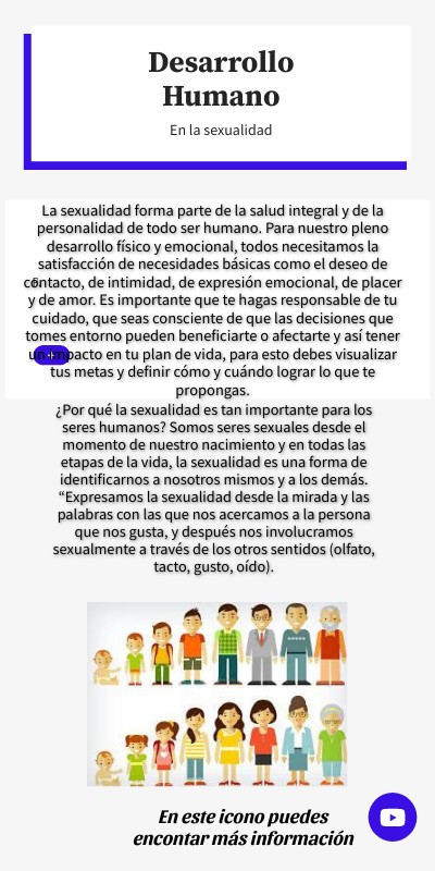 La sexualidad forma parte de la salud integral y de la personalidad de todo ser humano. Para nuestro pleno desarrollo físico y emocional, todos necesitamos la satisfacción de necesidades básicas como el deseo de contacto, de intimidad, de expresión emocional, de placer y de amor. Es importante que te hagas responsable de tu cuidado, que seas consciente de que las decisiones que tomes entorno pueden beneficiarte o afectarte y así tener un impacto en tu plan de vida, para esto debes visualizar tus metas y definir cómo y cuándo lograr lo que te propongas.