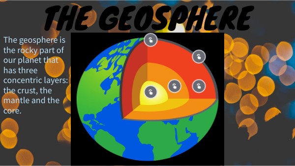 The geosphere is the rocky part of our planet that has three concentric layers: the crust, the mantle and the core.