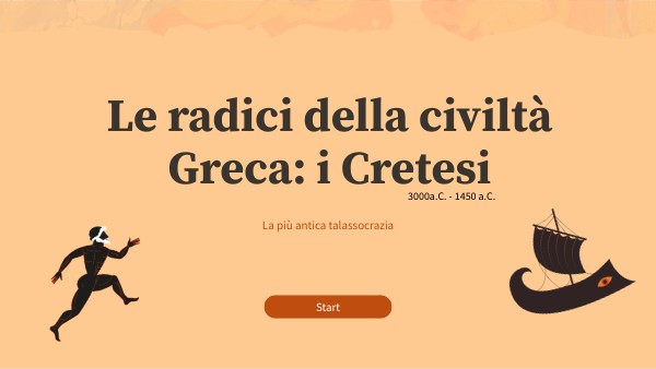 Qui ha inizio la storia della civiltà Greca, Creta, un'isola prevalentemente montuosa, ma pianeggiante sulle coste bagnate da un mare pescoso, il mar Egeo, nel bel mezzo del Mediterraneo. La sua posizione è molto strategica per i commerci, essendo al centro di ben tre continenti: Africa, Asia, Europa. La sua posizione permettere di raggiungere facilmente Grecia, Siria, Palestina e Egitto e una miride di altre isolette, favorendo così, la navigazione. Lunga 250km per una larghezza massima di 55km.