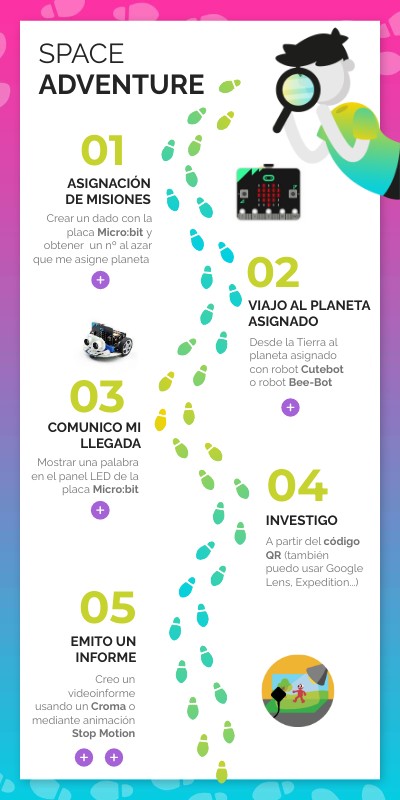 Desde la Tierra al planeta asignado con robot Cutebot o robot Bee-Bot