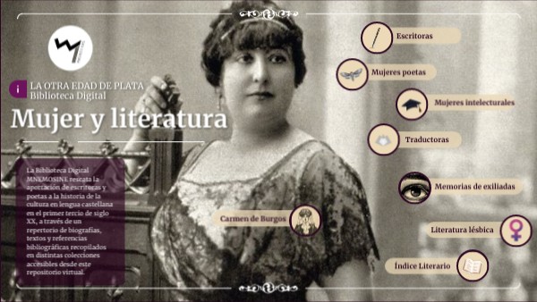 La Biblioteca Digital MNEMOSINE rescata la aportación de escritoras y poetas a la historia de la cultura en lengua castellana en el primer tercio de siglo XX, a través de un repertorio de biografías, textos y referencias bibliográficas recopilados en distintas colecciones accesibles desde este repositorio virtual.