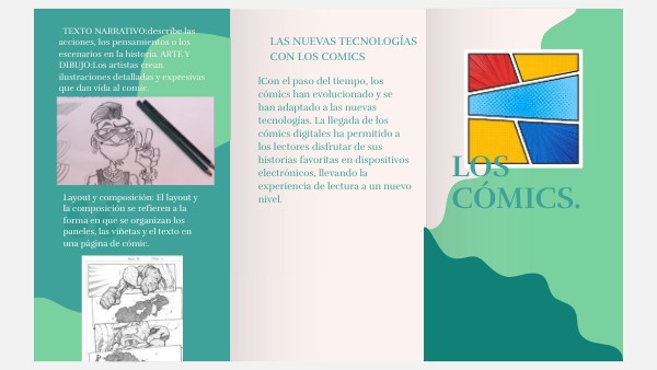 TEXTO NARRATIVO:describe las acciones, los pensamientos o los escenarios en la historia. ARTE Y DIBUJO:Los artistas crean ilustraciones detalladas y expresivas que dan vida al comic.