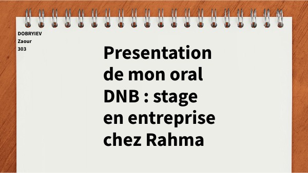 Presentationde mon oral DNB : stage en entreprise chez Rahma