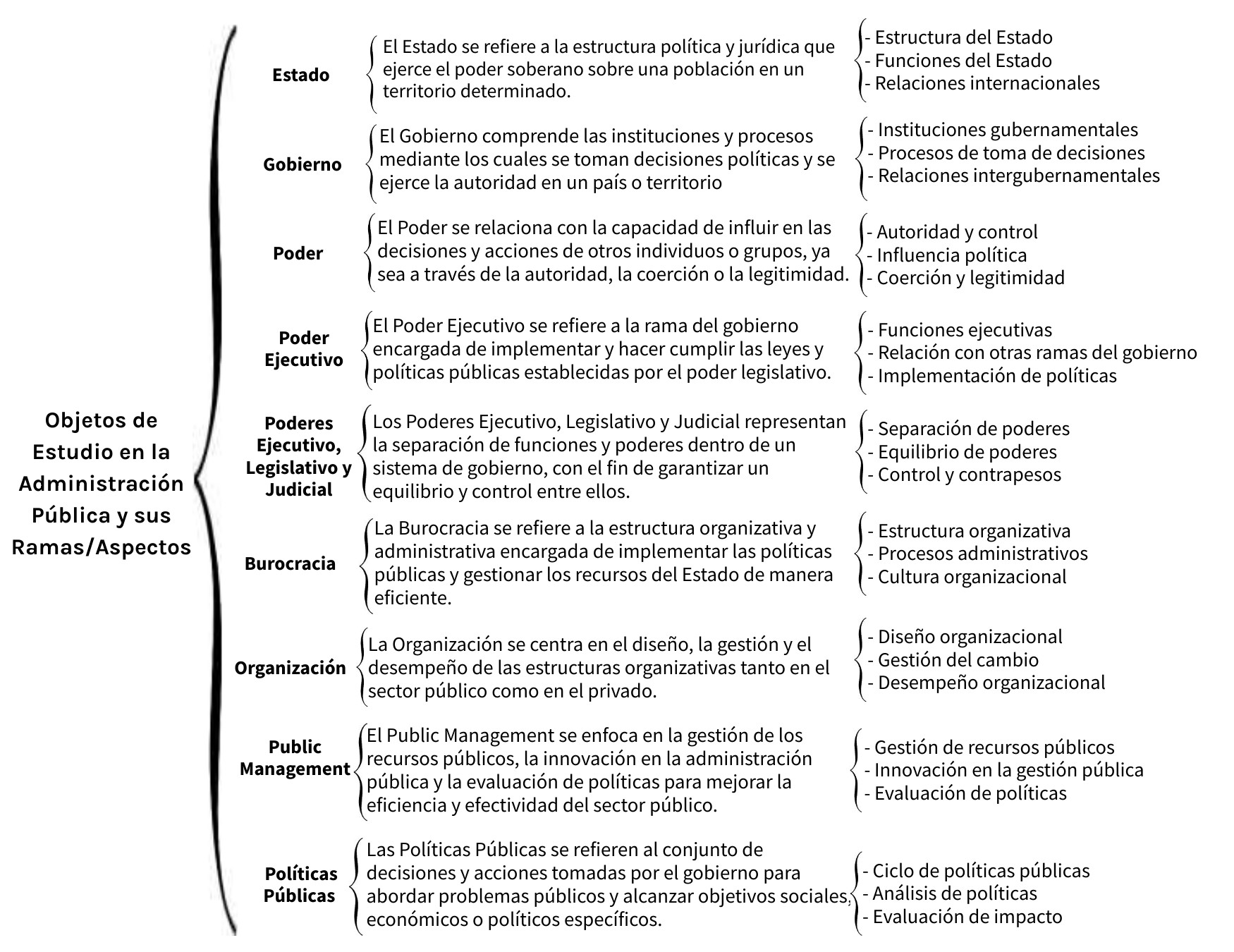Objetos de Estudio en la Administración Pública y sus Ramas/Aspectos